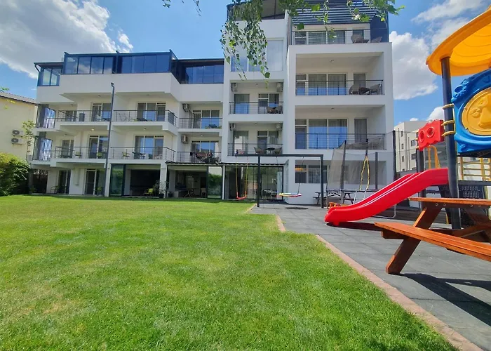 Mianelly Apartments Mamaia Nord Năvodari jest położony w dzielnicy Mamaia Nord w Năvodari i zapewnia Gościom Wi-Fi oraz bezpłatny prywatny parking na terenie. Położony przy plaży apartament dysponuje również tarasem z widokiem na ogród.